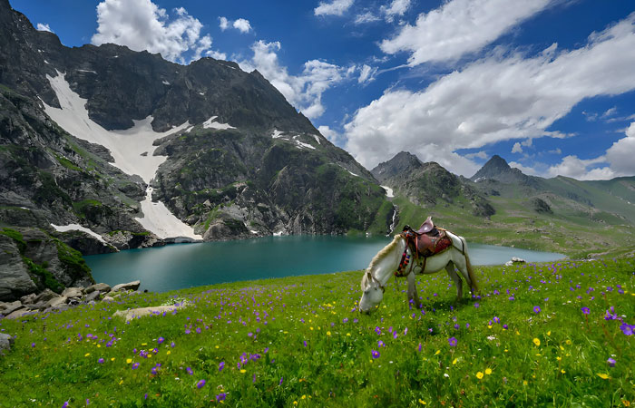 After breakfast, begin your trek to Krishansar Lake (approximately 4-5 hours). The trek will offer breathtaking views of the majestic mountains and pristine surroundings. Krishansar Lake is surrounded by snow-capped peaks, providing a perfect setting for nature lovers. Camp near the lake for an overnight stay.
