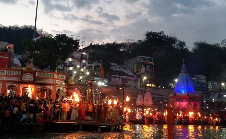 Haridwar is an ancient city and important Hindu pilgrimage site in North India's Uttarakhand state, where the River Ganges exits the Himalayan foothills. The largest of several sacred ghats (bathing steps), Har Ki Pauri hosts a nightly Ganga Aarti (river-worshipping ceremony) in which tiny flickering lamps are floated off the steps. Worshipers fill the city during major festivals including the annual Kanwar Mela.